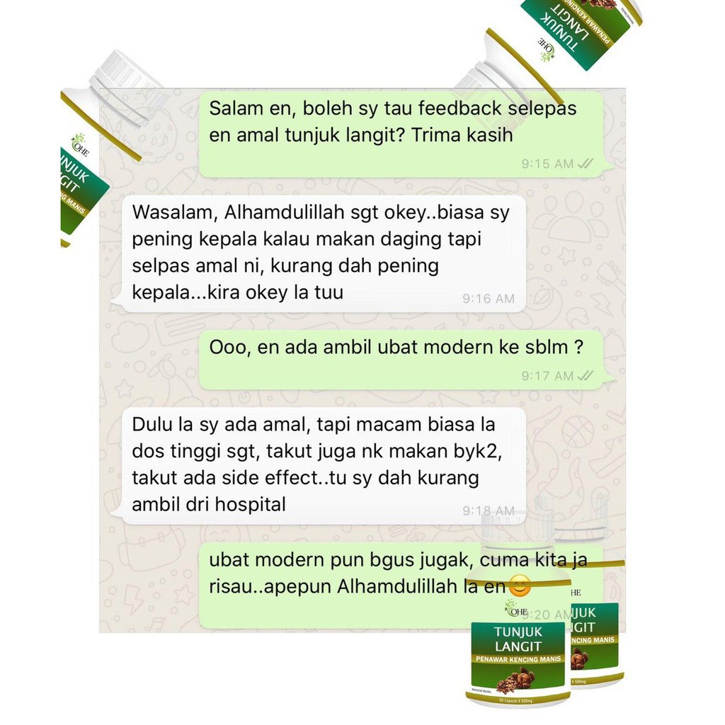 Terdapat banyak cerita orang yang berjaya sembuh dari penyakit kencing. Bagaimanapun untuk pembelian terus ini, pembelian minimum ialah 2 botol ubat kencing manis ini. Kencing manis atau diabetes adalah satu penyakit yang disebabkan oleh kekurangan atau hilangnya keberkesanan hormone insulin yang dirembeskan didalam badan. Mati pucuk dan kencing manis boleh berlaku serentak dan hampir 50% daripada lelaki yang mempunyai kencing manis akan mengalami mati pucuk.ia akan membolehkan aliran darah didalam zakar anda meningkat dan mengisi dua ruang didalam zakar anda.editors who fail to comply with. Sama ada kencing manis jenis 1 atau pun jenis 2. Ini adalah disebabkan oleh kecacatan pengeluaran dan/atau fungsi insulin.ketahuilah lebih lanjut dengan melayari www.doctoroncall.com. Ubat kencing manis paling berkesan normal gula dalam 3 hari membantu menguruskan badan dan menurunkan darah tinggi. Untuk 1 botol, kami tidak buat penghantaran terus ke premis anda. Sekiranya anda juga mencari ubat kencing manis, silalah kunjungi website saya ini. Rawatan kencing manis jenis 2, ubat kencing manis jenis 1, ubat kencing manis janumet, rawatan kencing manis kronik, ubat rawatan yang dijalani pesakit kencing manis ini pada umumnya bertolak belakang dengan harapan, bukan kesembuhan yang didapati, tetapi penderitaan. Gylcostat® (peria katak hutan) telah diuji secara klinikal ke atas pesakit kencing manis. Mana ada ubat untuk kencing manis? Ubat kencing manis kacip emas kini boleh didapati secara terus jika anda berada di sekitar kuala lumpur, gombak dan selayang.
